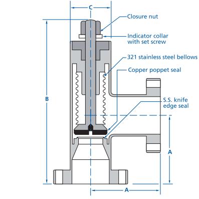 This full-metal sealed valve is used in ultra-high vacuum systems or cryogenic systems where elastomer-sealed valves cannot be used due to extreme temperatures.