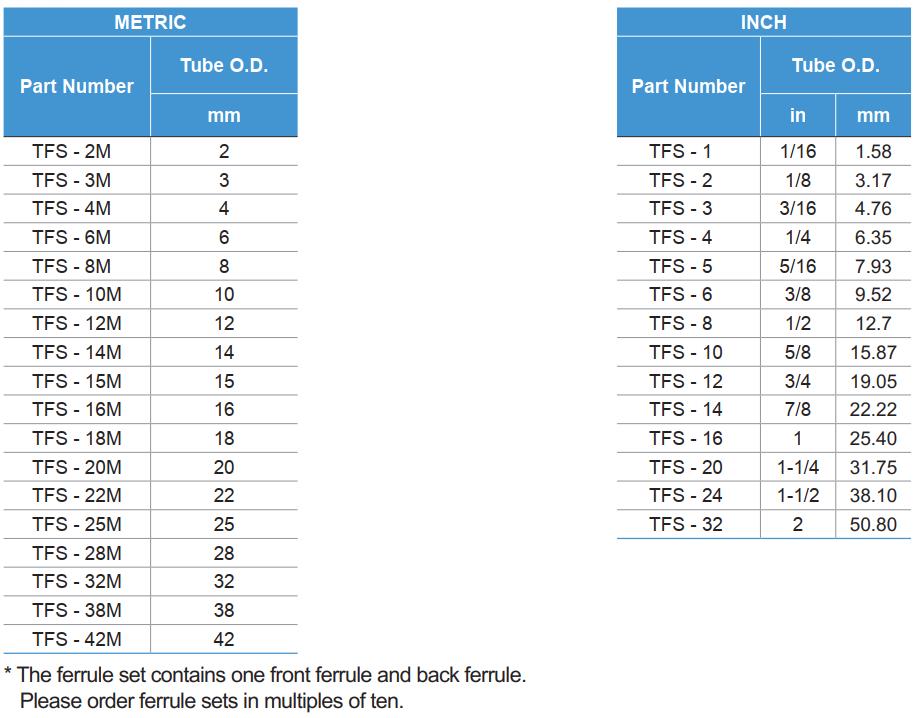 尺寸范围从1/16"-2",2mm-50mm。