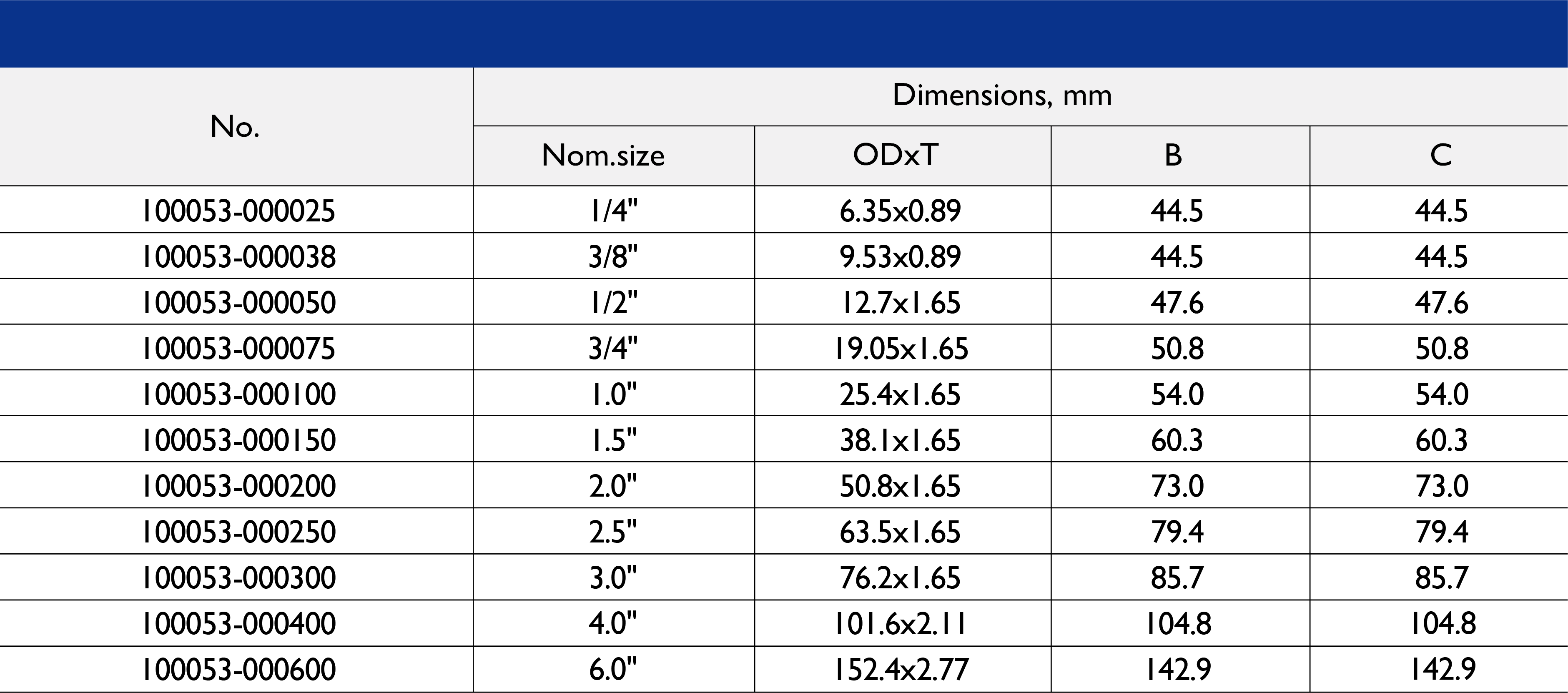 Size Range: 1/2" to 10"