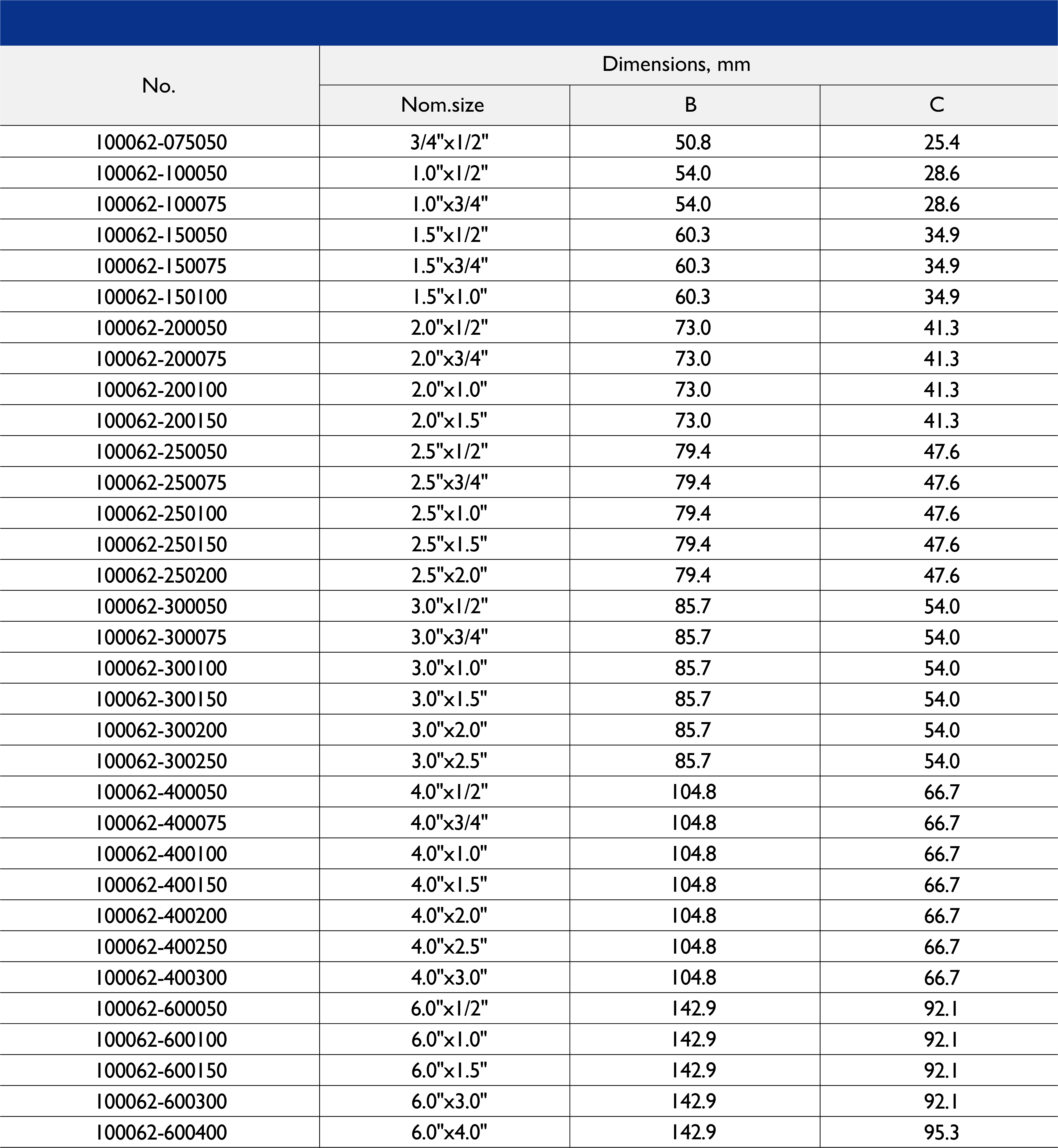 Specifications:  Sizes from 1/2" to 10" and more are available.