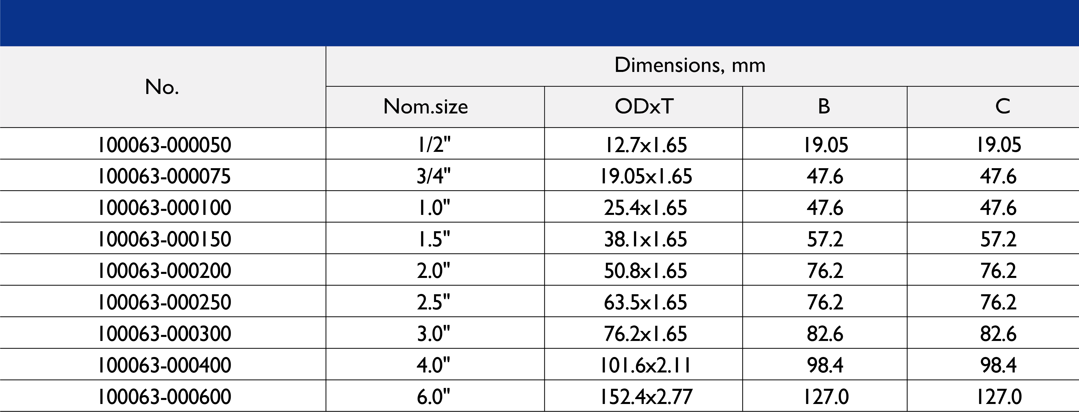 Size Range: 1/2" to 10"