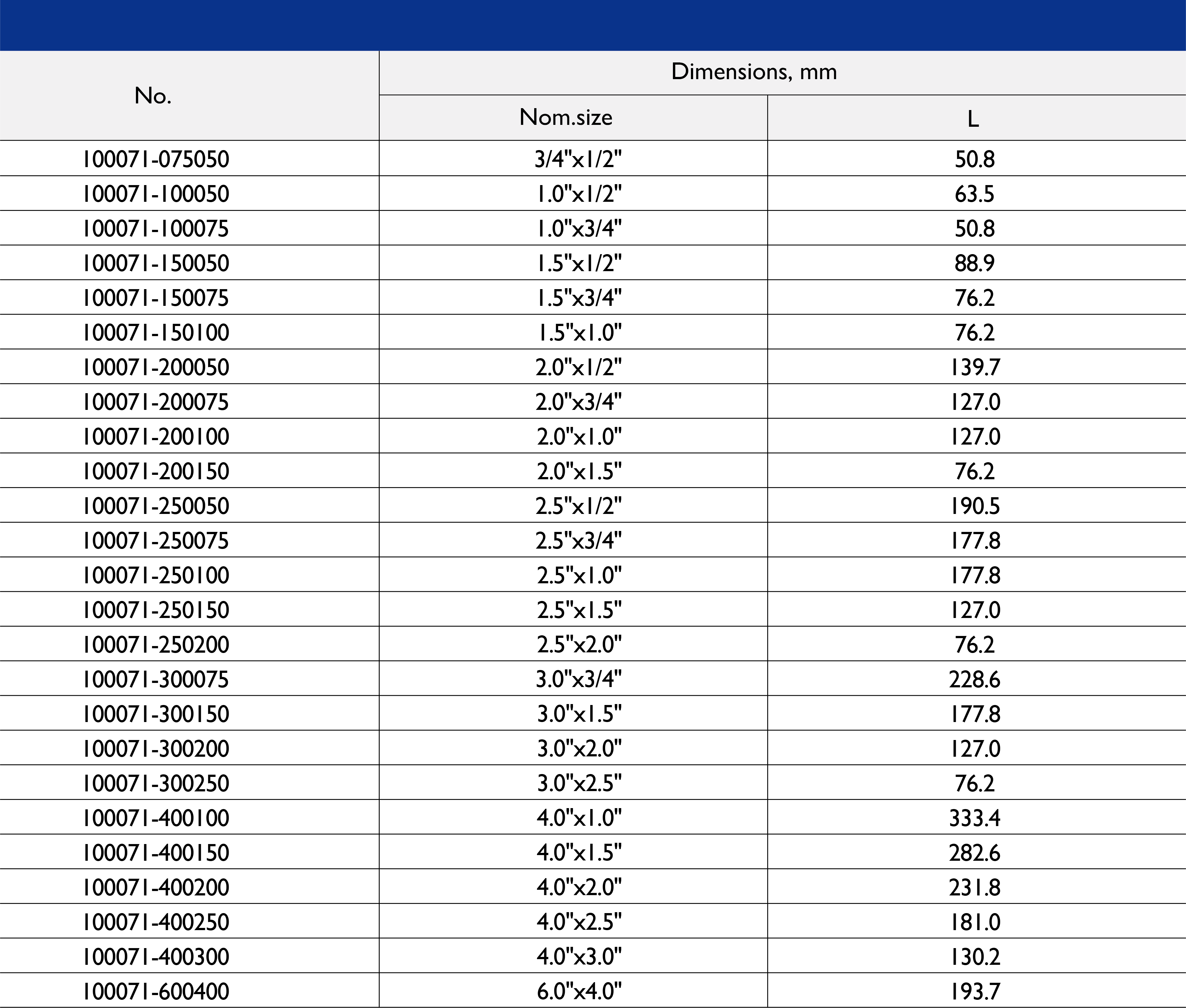 Size Range: 1/2" to 10"
