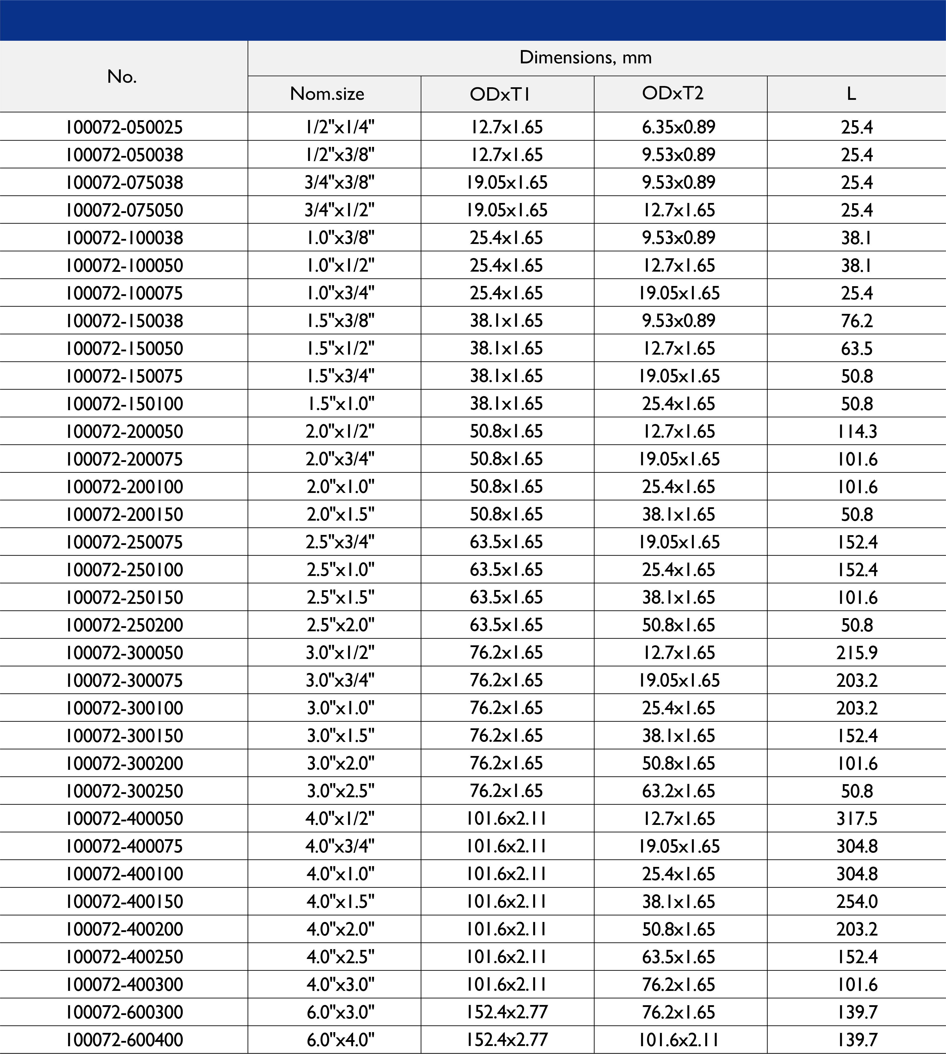 Size Range: 1/2" to 10"