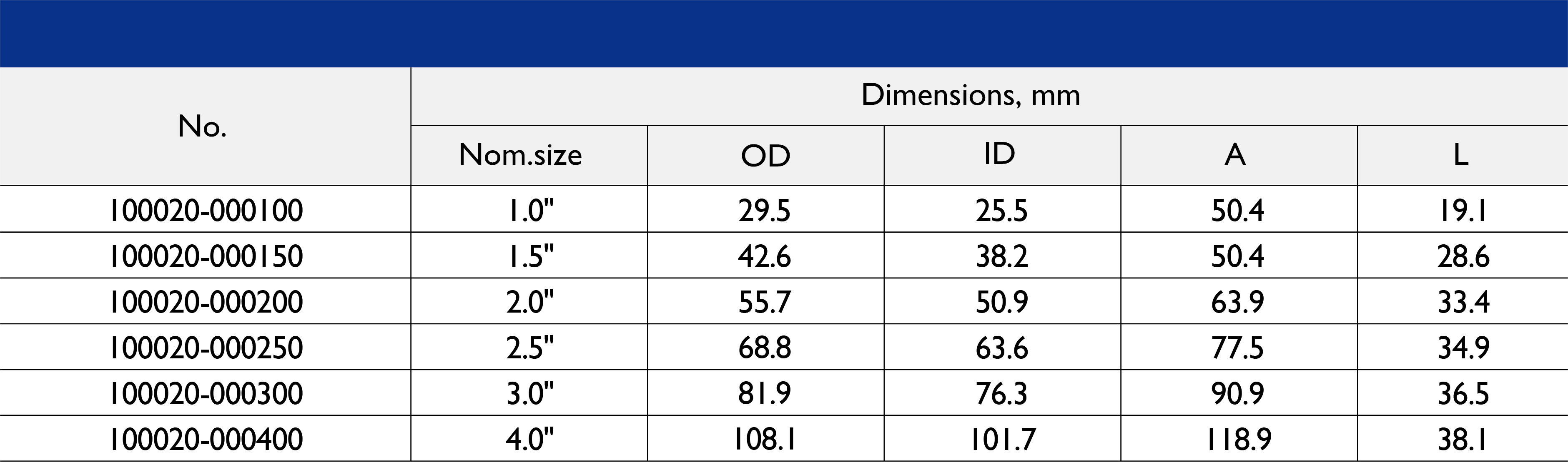 Size Range: 1/2" to 10"