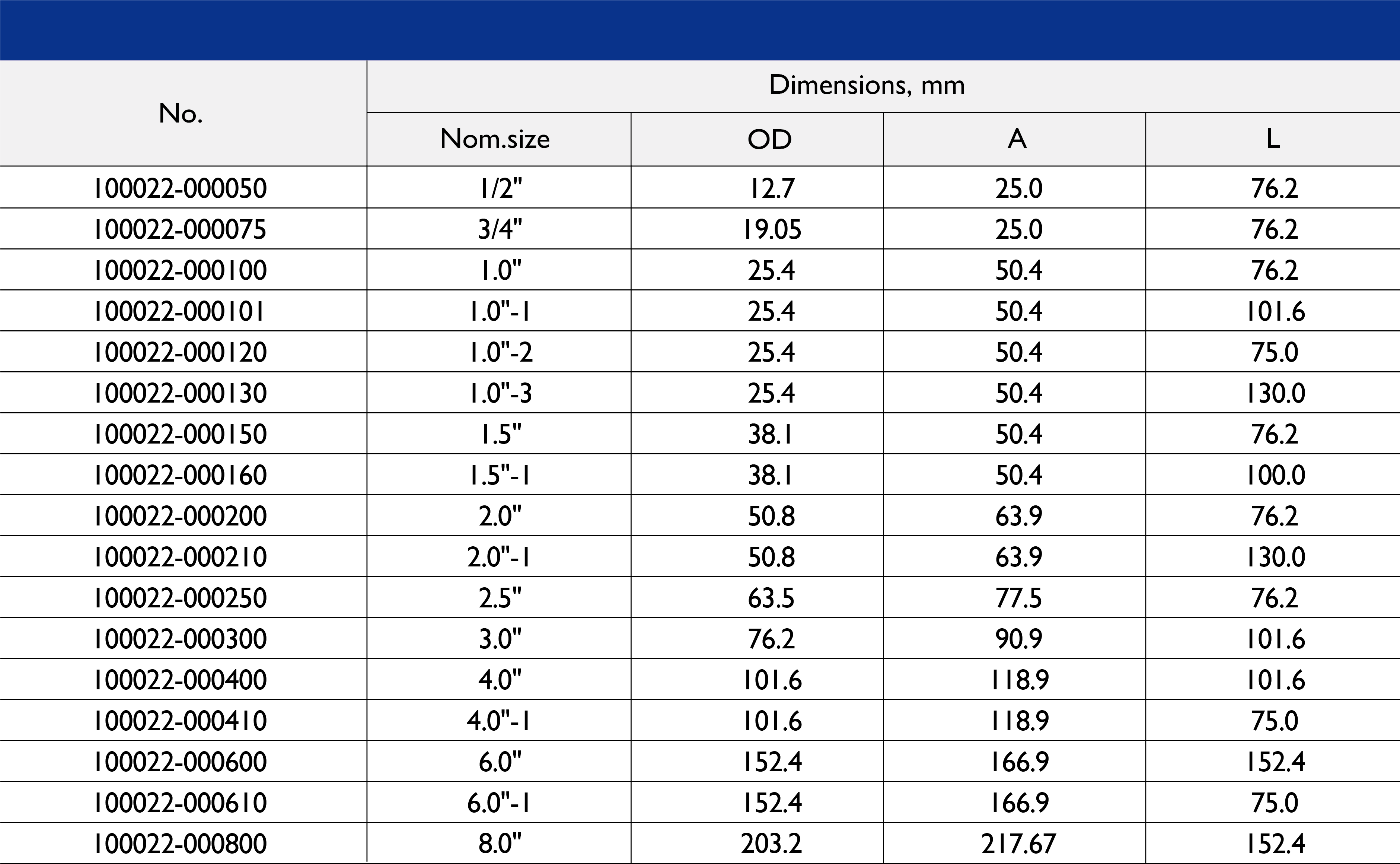 Size Range: 1/2" to 10"