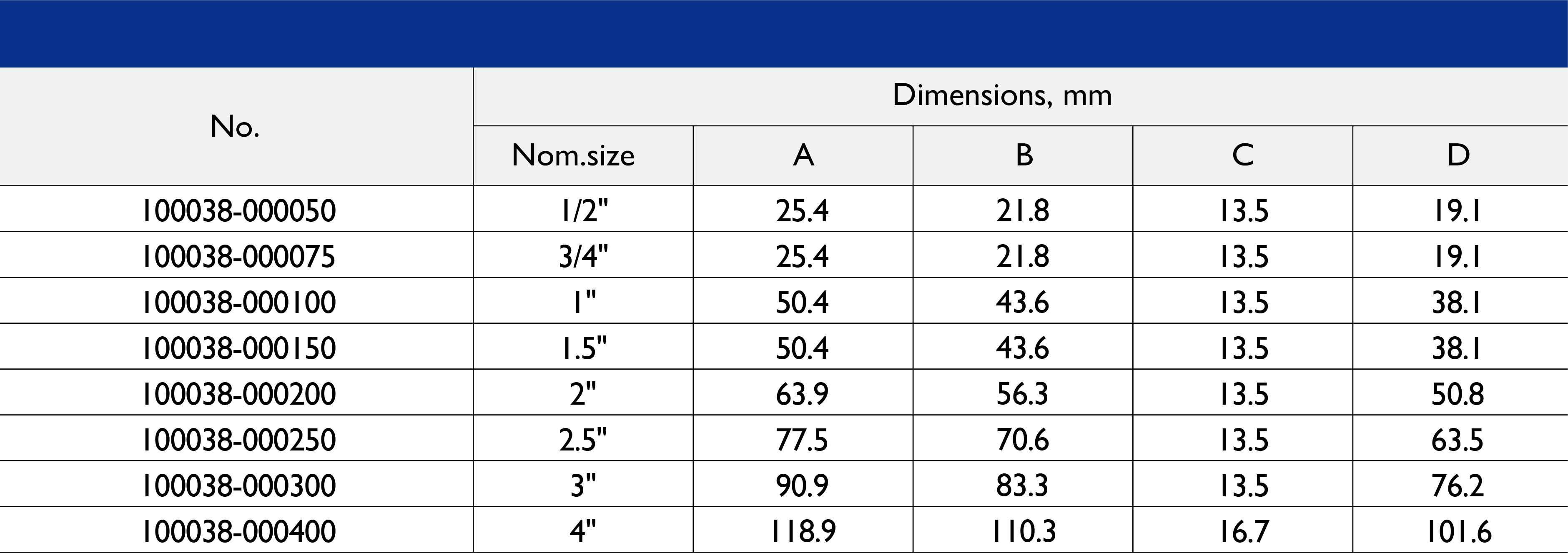 Size Range: 1/2" to 10"